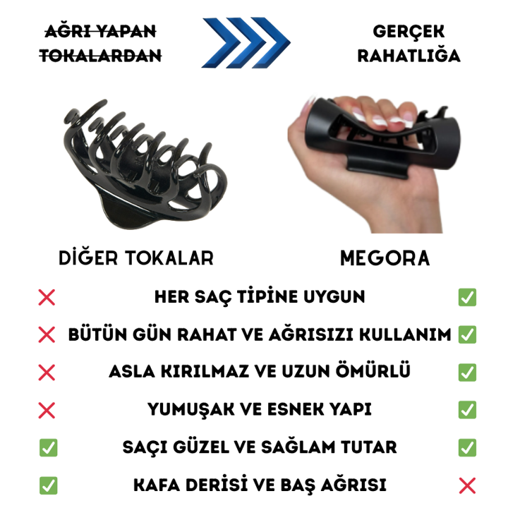 Megora elastik saç tokası ile baş ağrısı ve baskıya son. Ergonomik tasarım, konforlu kullanım. Spor ve günlük kullanım için ideal.
